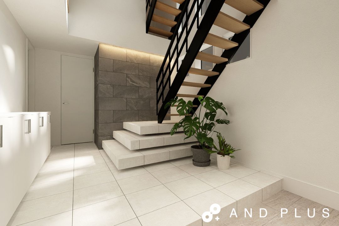 □ 吹抜×鉄骨階段が魅せる洗練された玄関